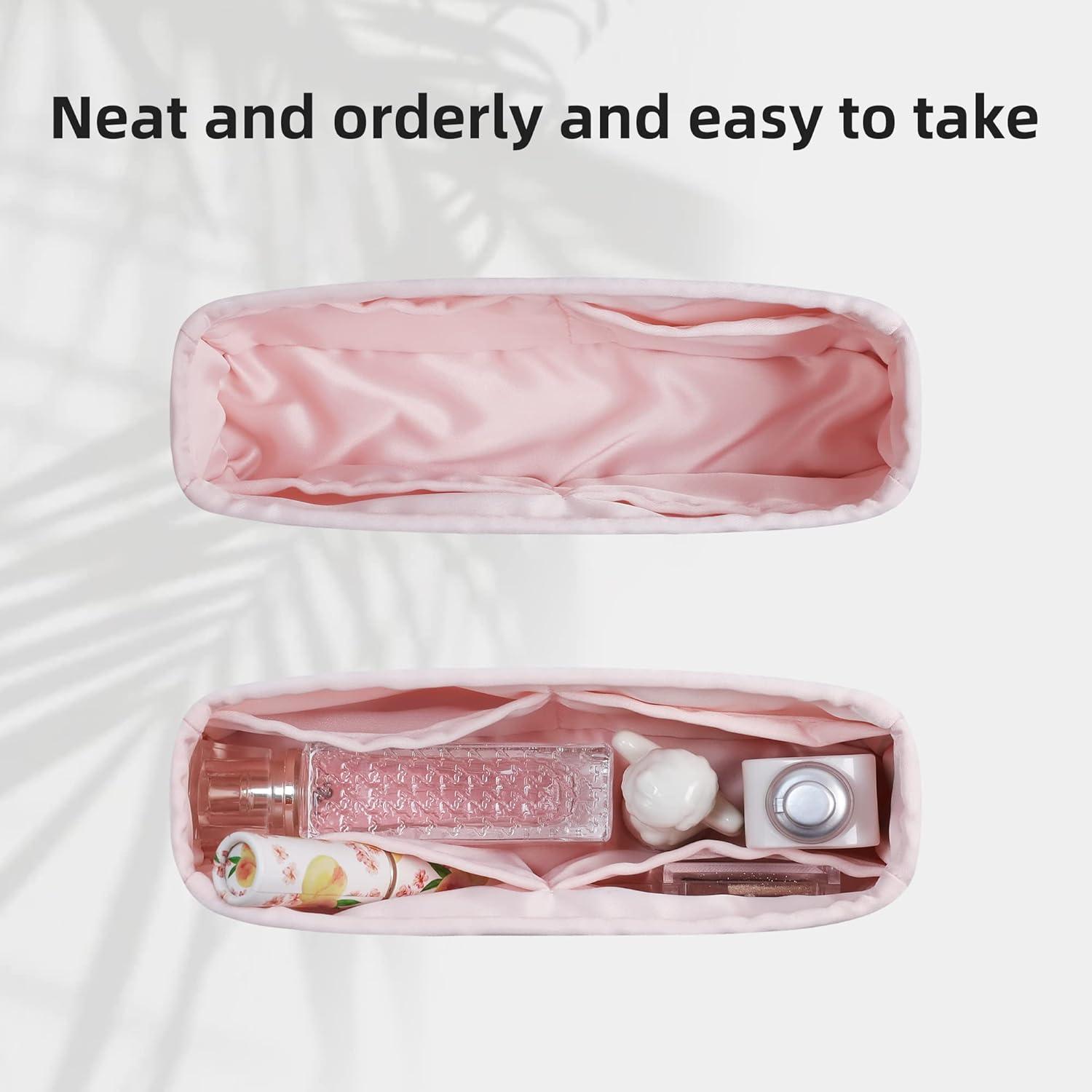 DGAZ Silk Purse Organizer Insert For Lady-Dior Micro/Mini/S/M/L bags,Silky Smooth Bag Organizer,Luxury Handbag & Tote Shaper(Craie,S)(Rose dragee)