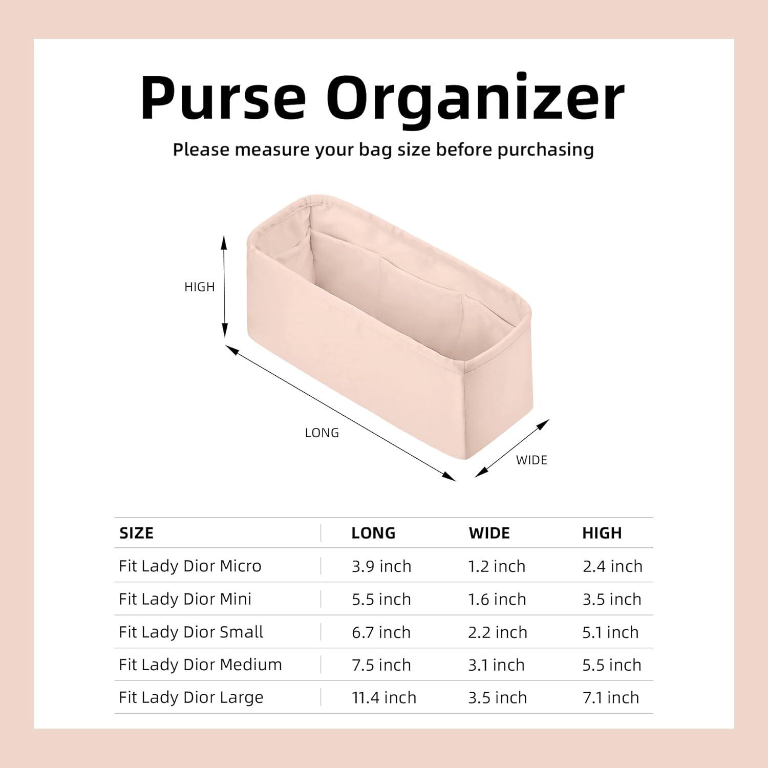 DGAZ Silk Purse Organizer Insert For Lady-Dior Micro/Mini/S/M/L bags,Silky Smooth Bag Organizer,Luxury Handbag & Tote Shaper(Craie,S)(Rose dragee)