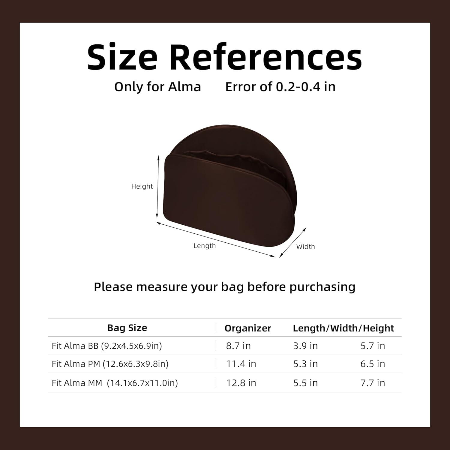 DGAZ Silk Purse Organizer Insert For LV Alma BB/PM/MM bag,Silky Smooth Bag Organizer,Luxury Handbag & Tote Shaper(Coffee brown,BB)(Custom)