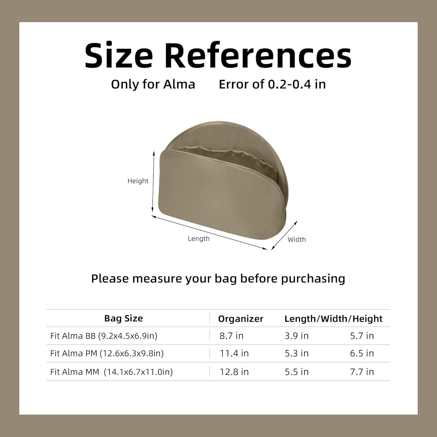 DGAZ Silk Purse Organizer Insert For LV Alma BB/PM/MM bag,Silky Smooth Bag Organizer,Luxury Handbag & Tote Shaper(Coffee brown,BB)(Custom)