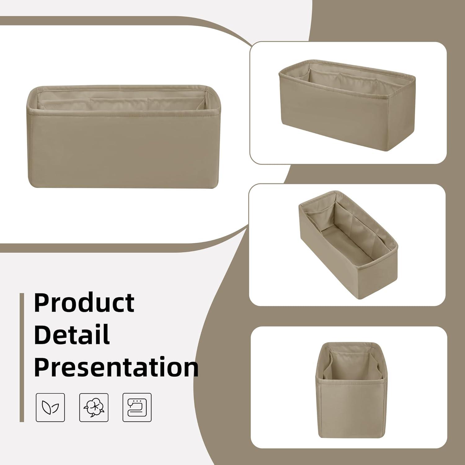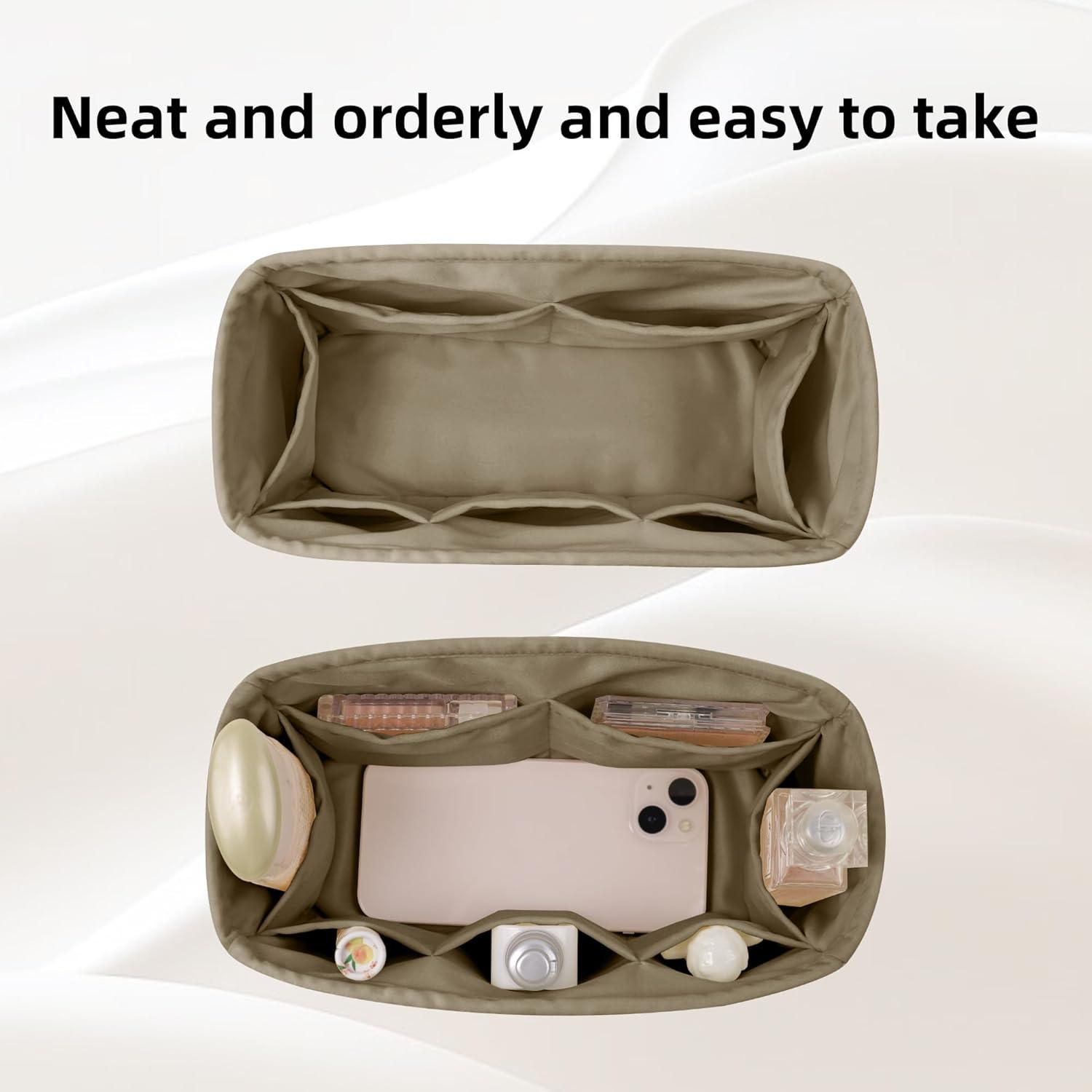 DGAZ Silk Purse Organizer Insert For On My Side bags,Silky Smooth Bag Organizer,Luxury Handbag & Tote Shaper(Black,S)(Etoupe grey)