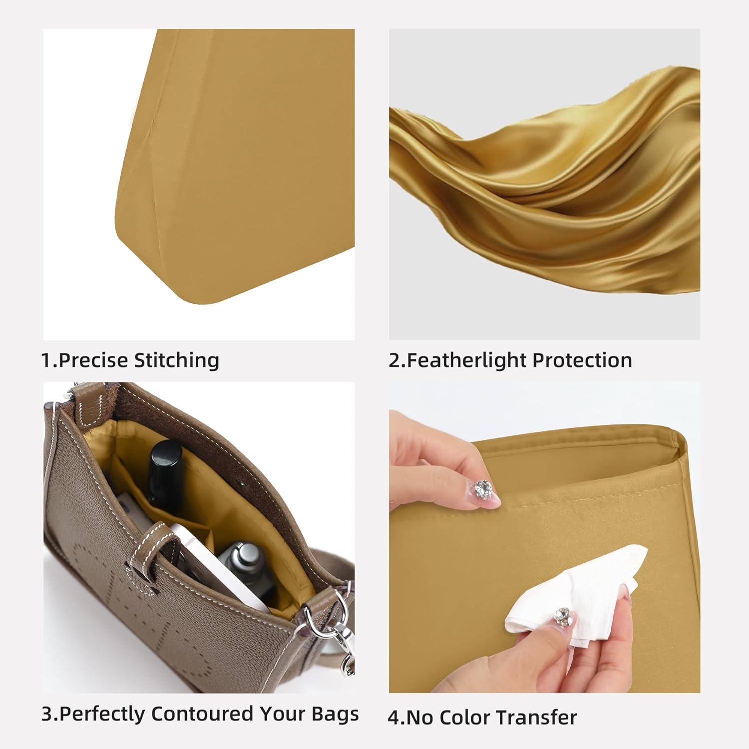 High-grade material: our handbag organizer is made of high-grade silk, silky feel, lightweight, soft and firm, satin bag organizer can easily support the bag and does not leave traces; precious bag is the need for a matching partner, out of communication more highlight the consistent internal and external noble.