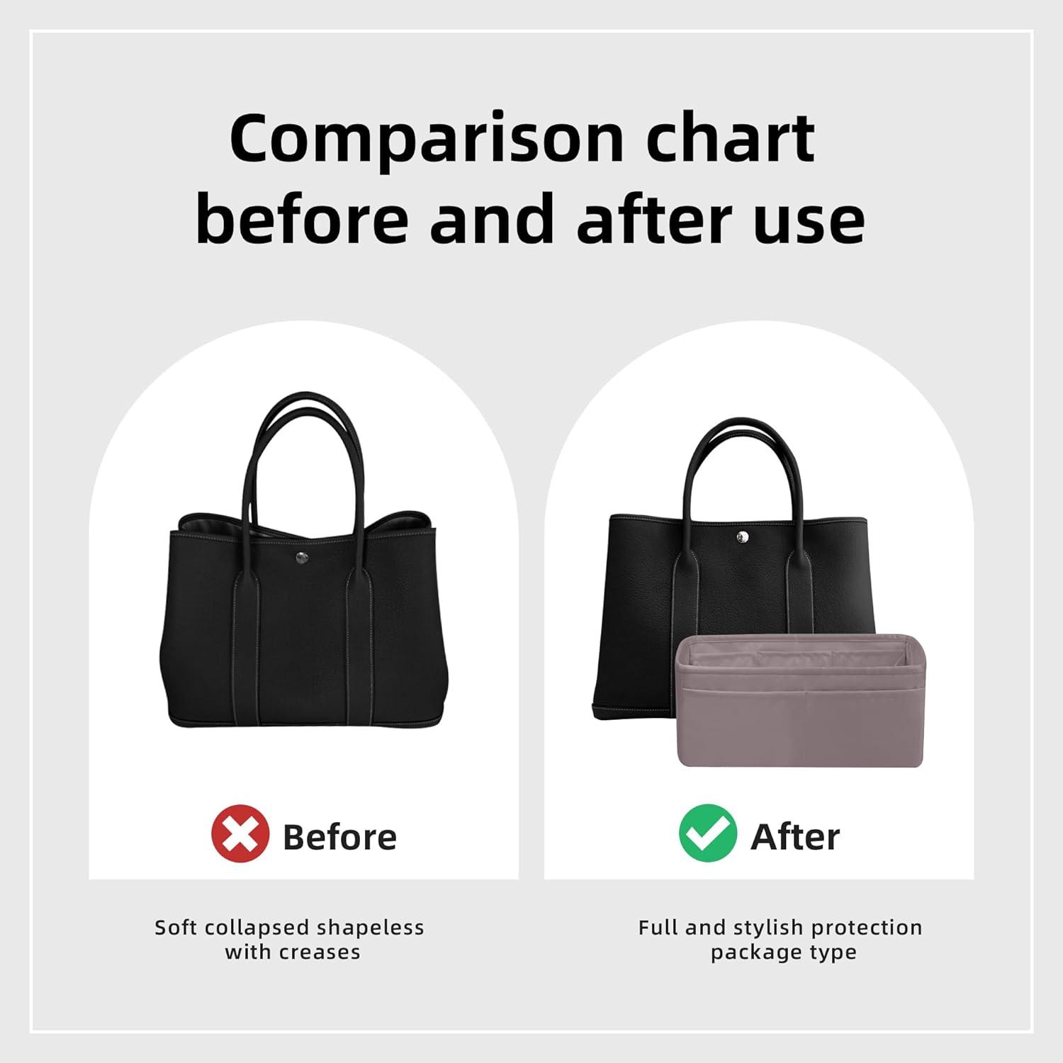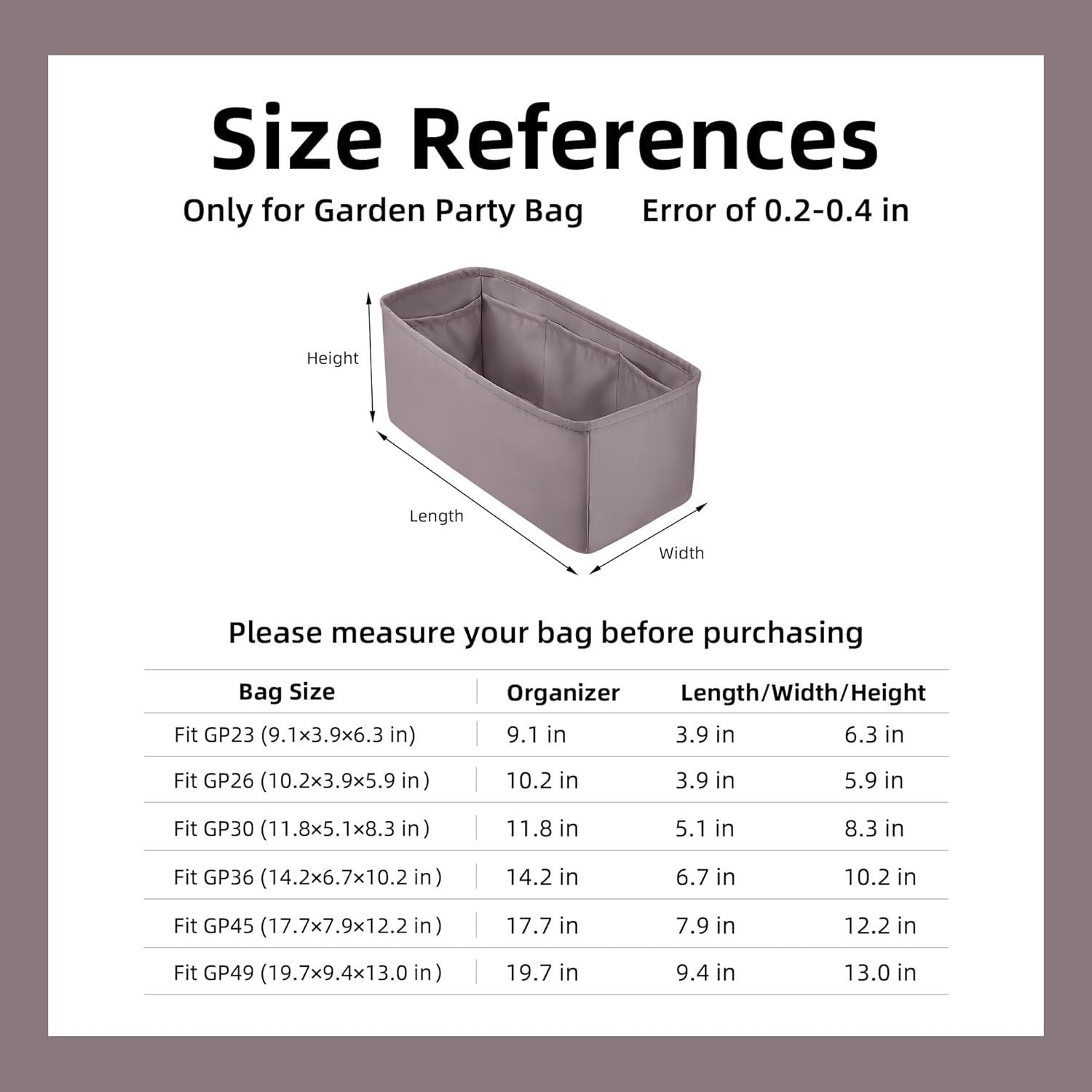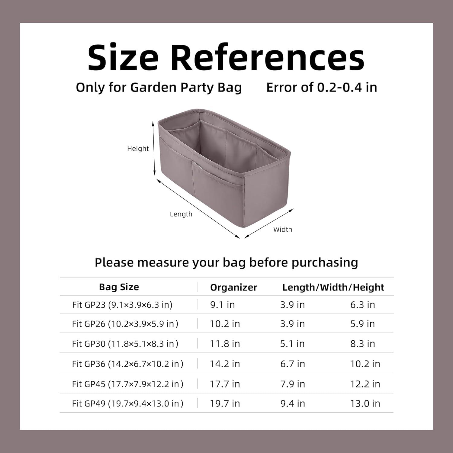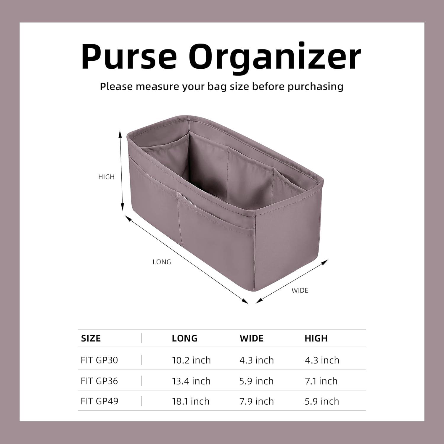 DGAZ Silky Purse Organizer Insert, Luxury Handbag & Tote Organizer, Simplicity bag organizer Fits Garden Party 30/36Bags(Konjac Purple,GP30)(Gris Tourterelle)