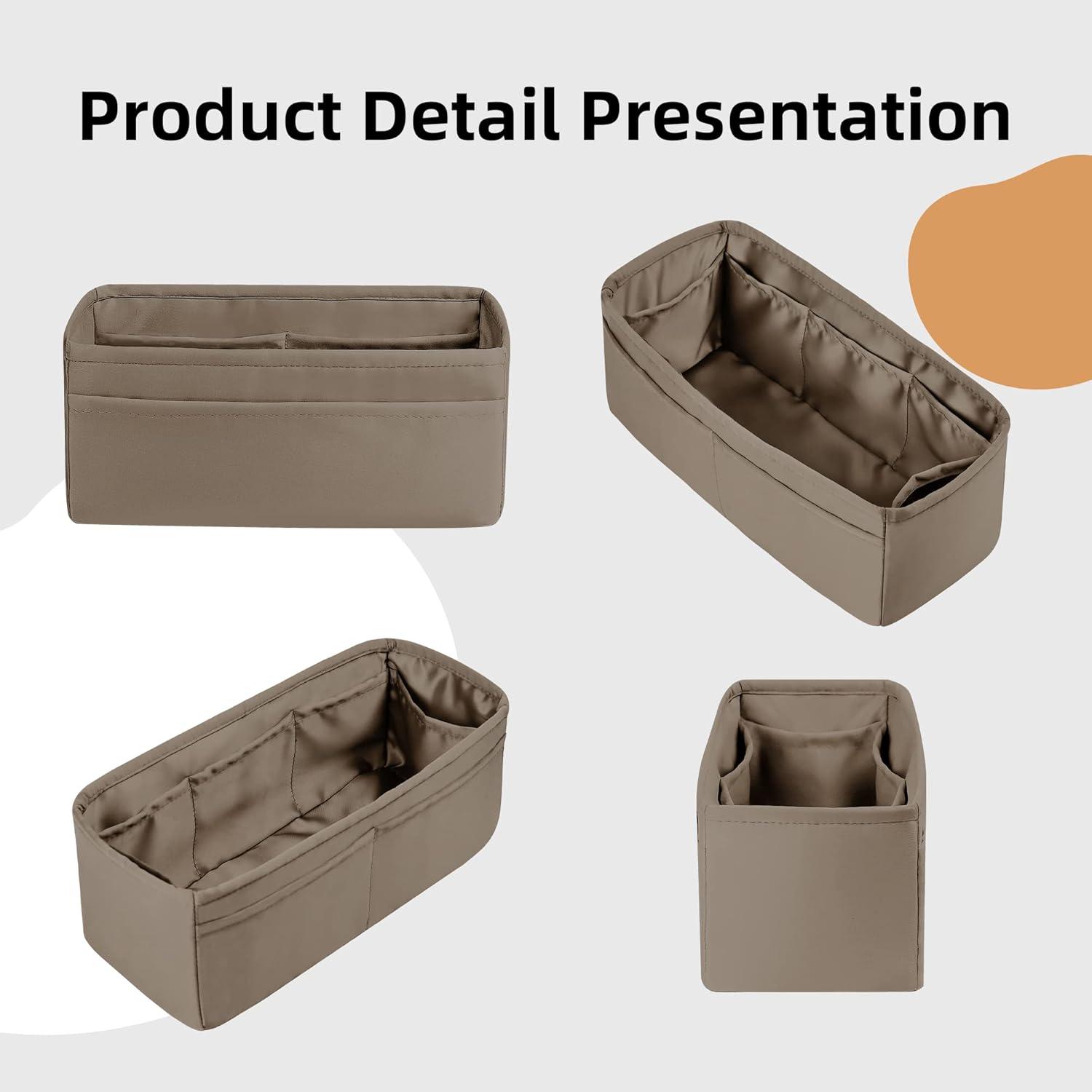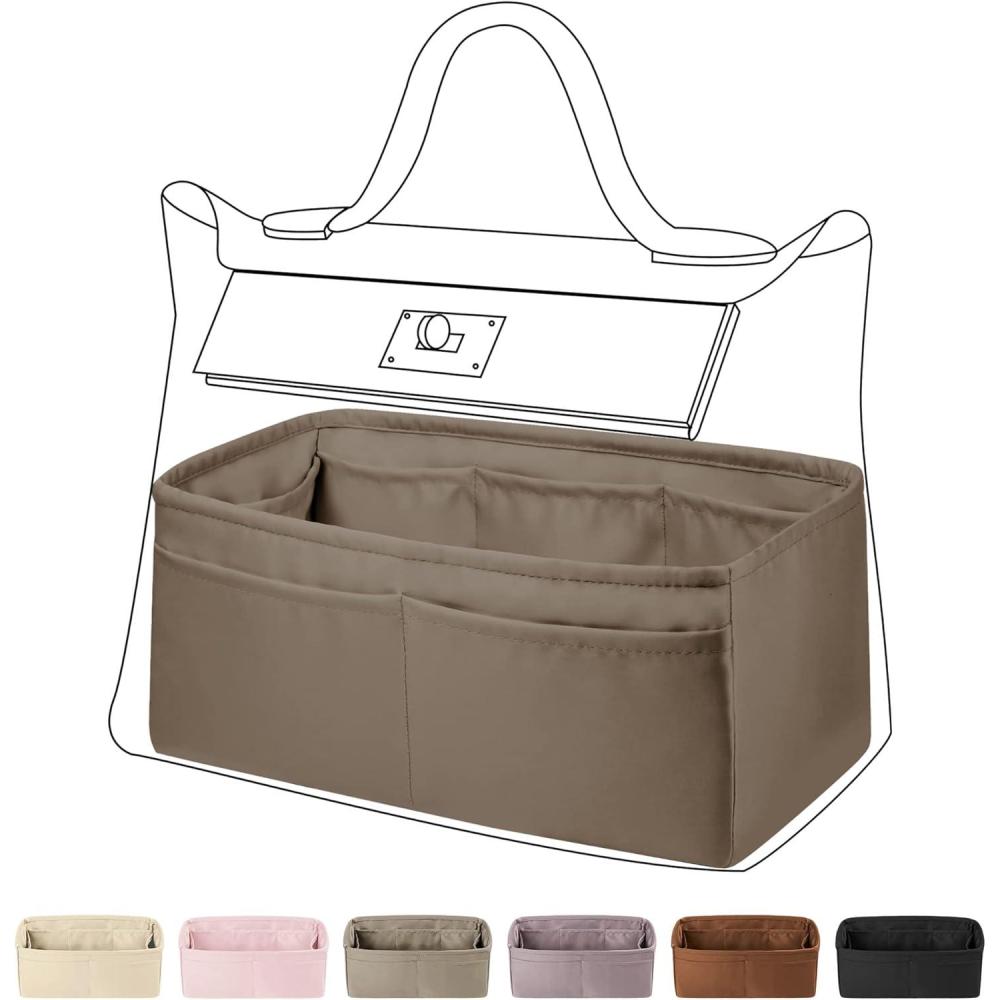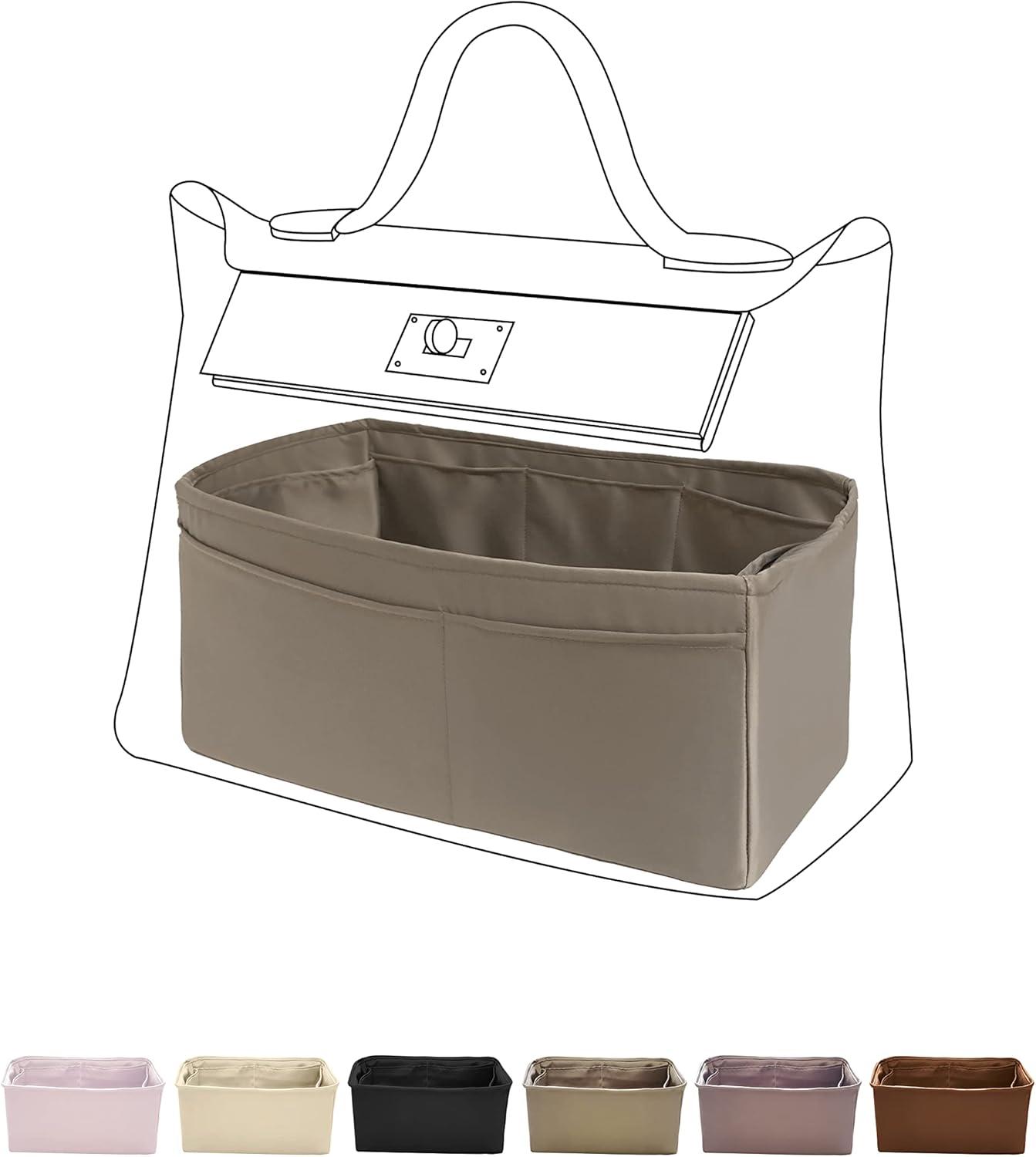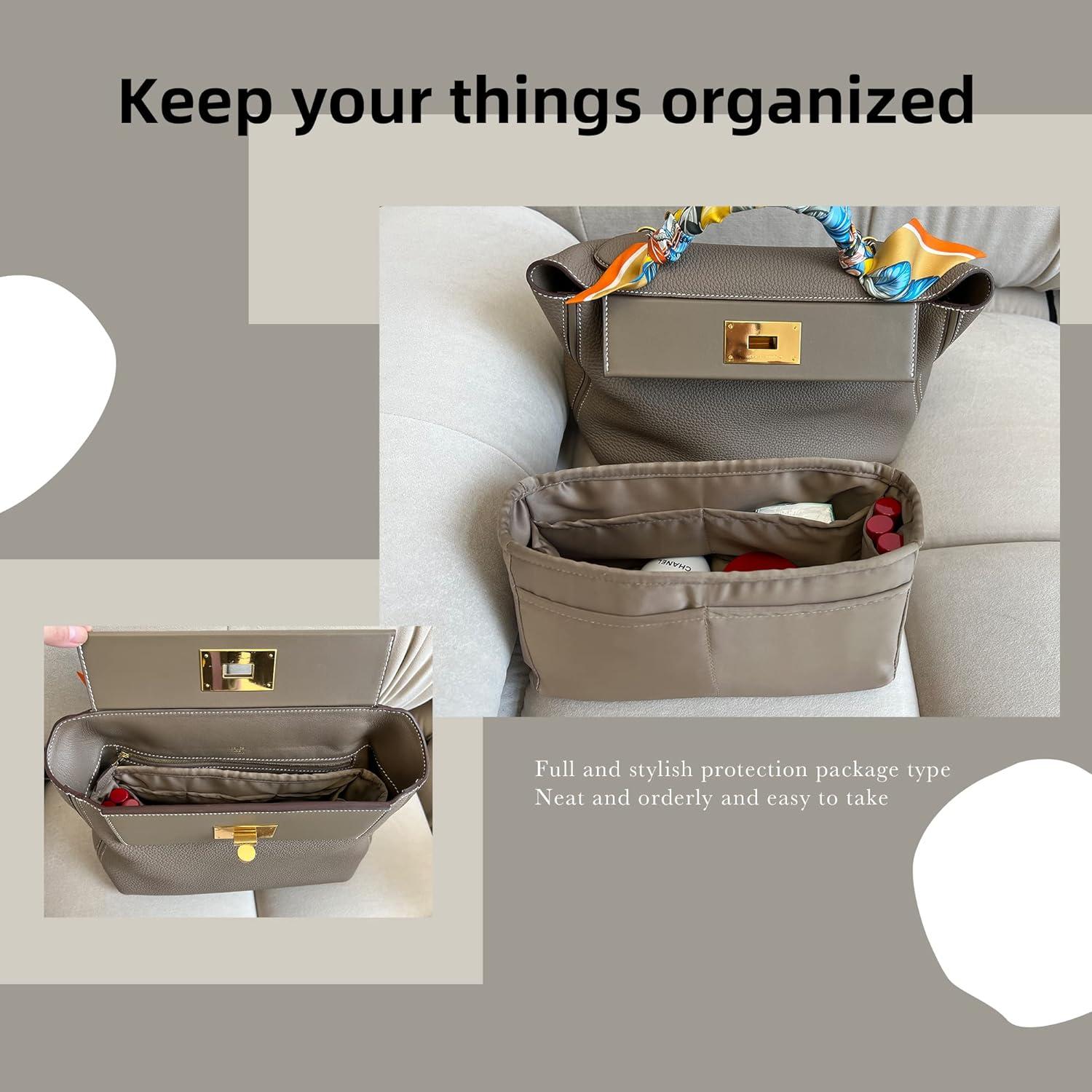 DGAZ Silky Purse Organizer Insert, Luxury Handbag & Tote Organizer, Simplicity bag organizer Fits Hermes 24/24-35 Bags(Black,35)(Etoupe grey)